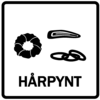 Pikotgrammet 'Hårpynt' gør det nemt at finde kassen eller skuffen med alt udstyret til en god hår dag. Og så er den både fin og praktisk.
