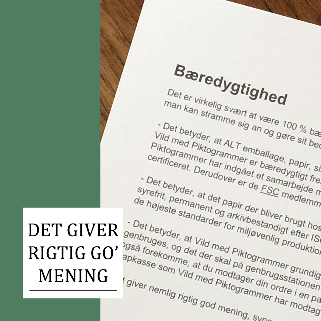 Det er virkelig svært at være 100 % bæredygtig i en branche der arbejder med papir og folie. Men man kan stramme sig an og gøre sit bedste! Og det gør Vild med Piktogrammer.