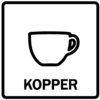 Stickeren 'Kopper' gør det nemt og overskueligt at finde den rigtige plads efter brug. Og så er piktogrammet både fint og praktisk.