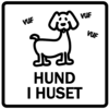 Stickeren 'Hund i huset' er perfekt, at sætte på døren for, at vise, at der er en hund i huset.
