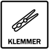 Piktogrammet 'klemmer' gør det nemt og overskueligt at finde kassen eller skuffen med klemmerne. Så er de lette at finde, når der skal hænges tøj op.