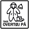 Piktogrammet 'Tage overtøj på, vinter' kan bruges til at fortælle, at nu er tiden til at få overtøj på, så man kan komme ud af døren.