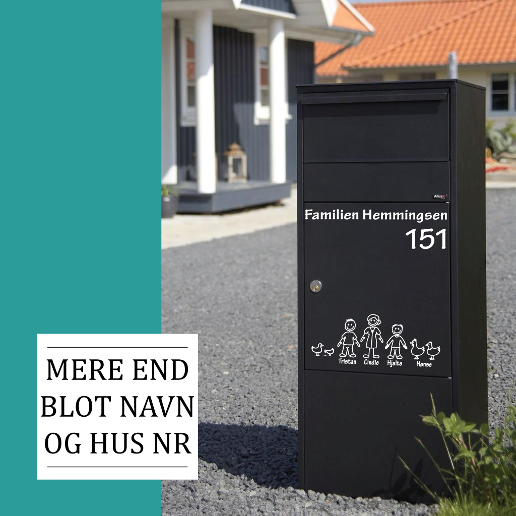 Postkassestickers kan være meget mere end en information om, hvor du bor. Herunder finder du hyggelige og søde wallstickers til postkassen, der synliggør alle i familien, store som små, og som kan holde i vind og vejr i op til 8 år.