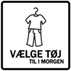 Piktogrammet 'Piktogram - Vælge tøj til i morgen, kjole' kan bruges til at fortælle, at nu er tiden til at vælge tøj til i morgen.